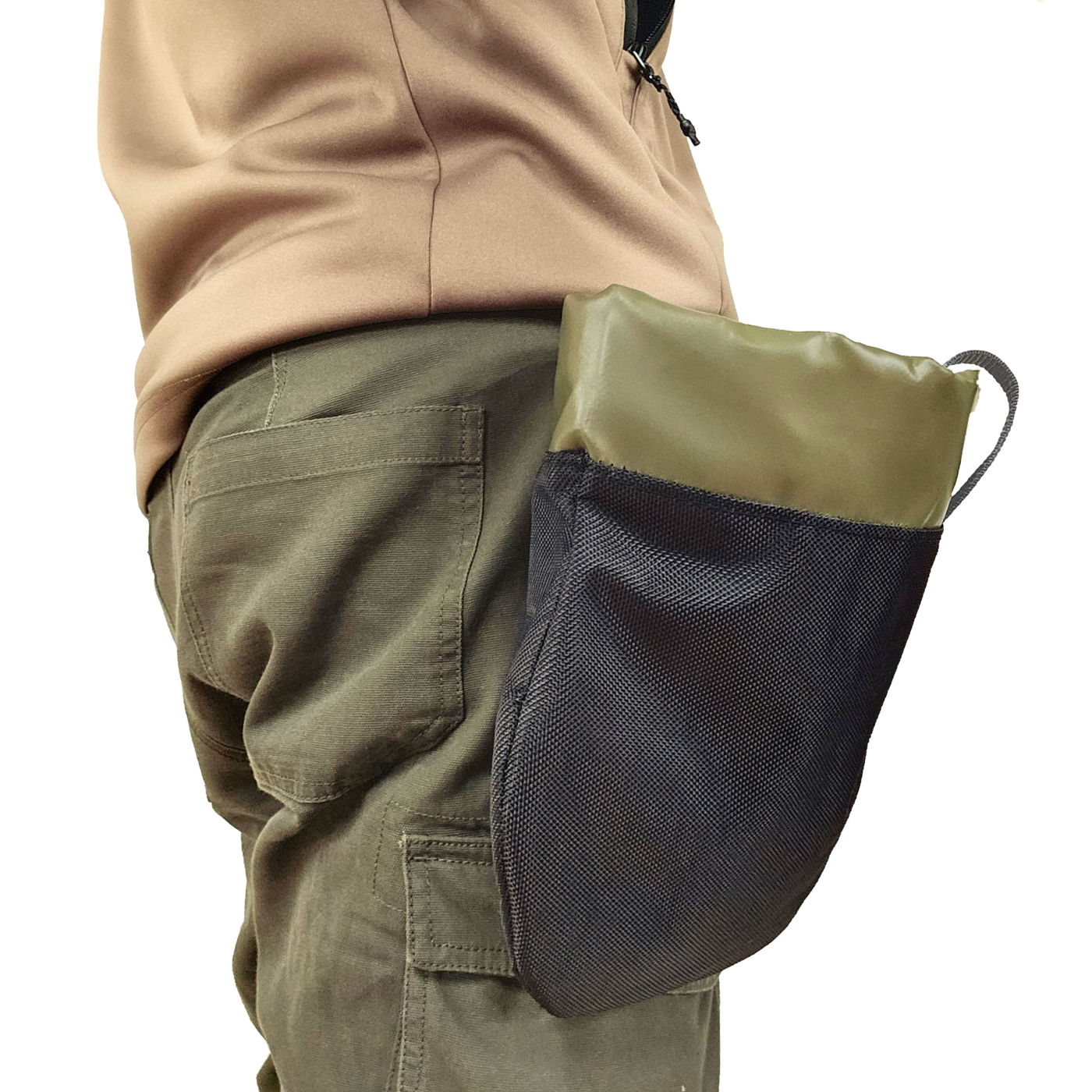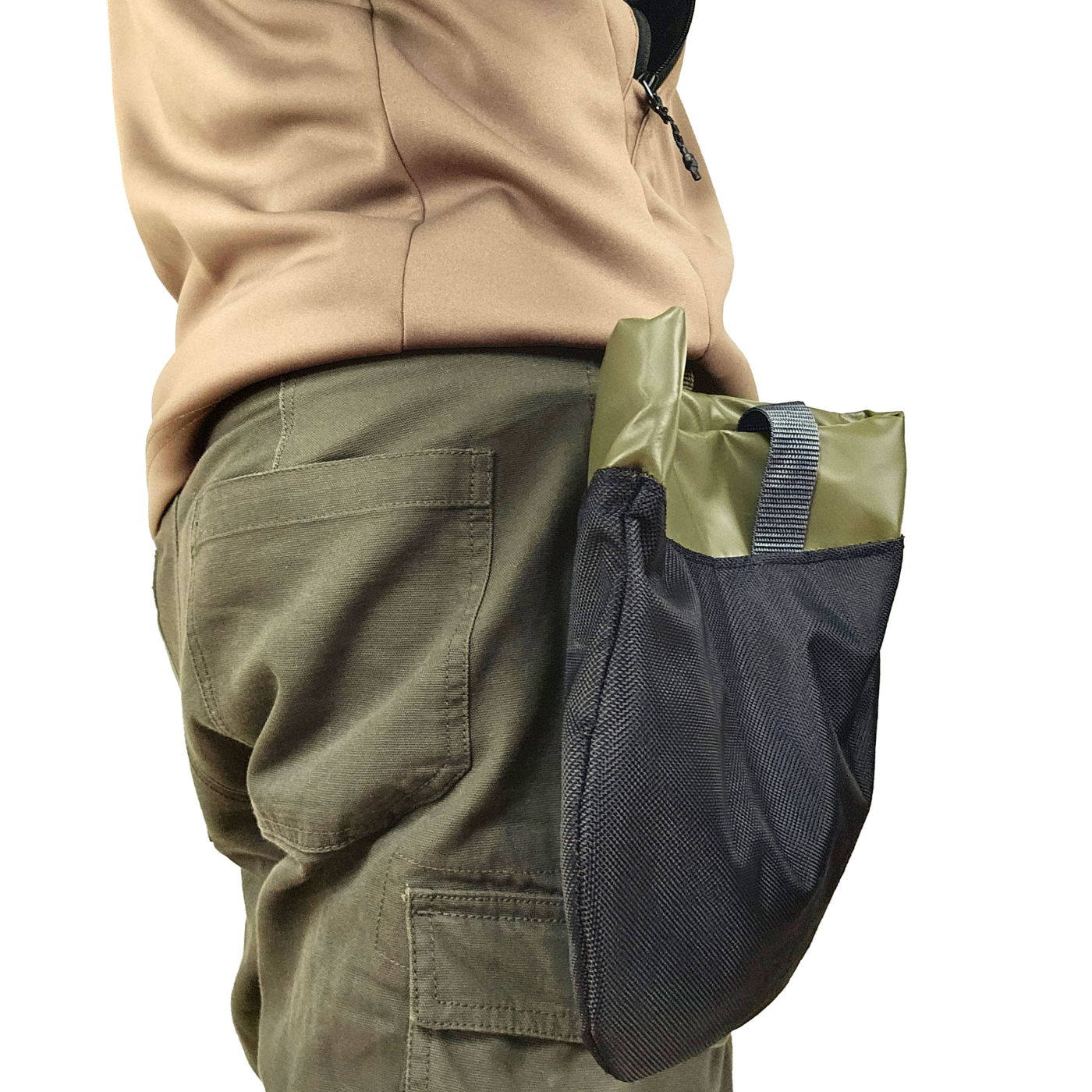 Крепится на пояс, при этом не требуется снимать ремень. С помощью разъемной петли сумку можно закрепить на ремне быстро и без необходимости расстегивать и вытаскивать ремень.